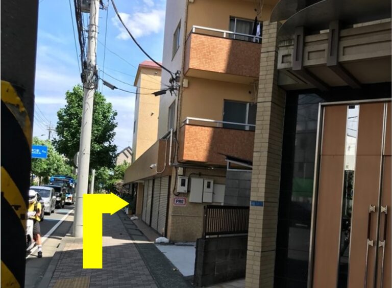 ③エスカレータを下りたら、そのまま通り沿いにまっすぐ東へと進んでいただきます。