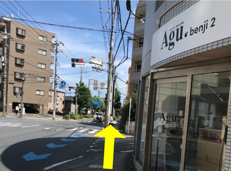 ⑤多摩病院を通過すると、宿河原一丁目の三差路に出ます。そのまま直進してください。